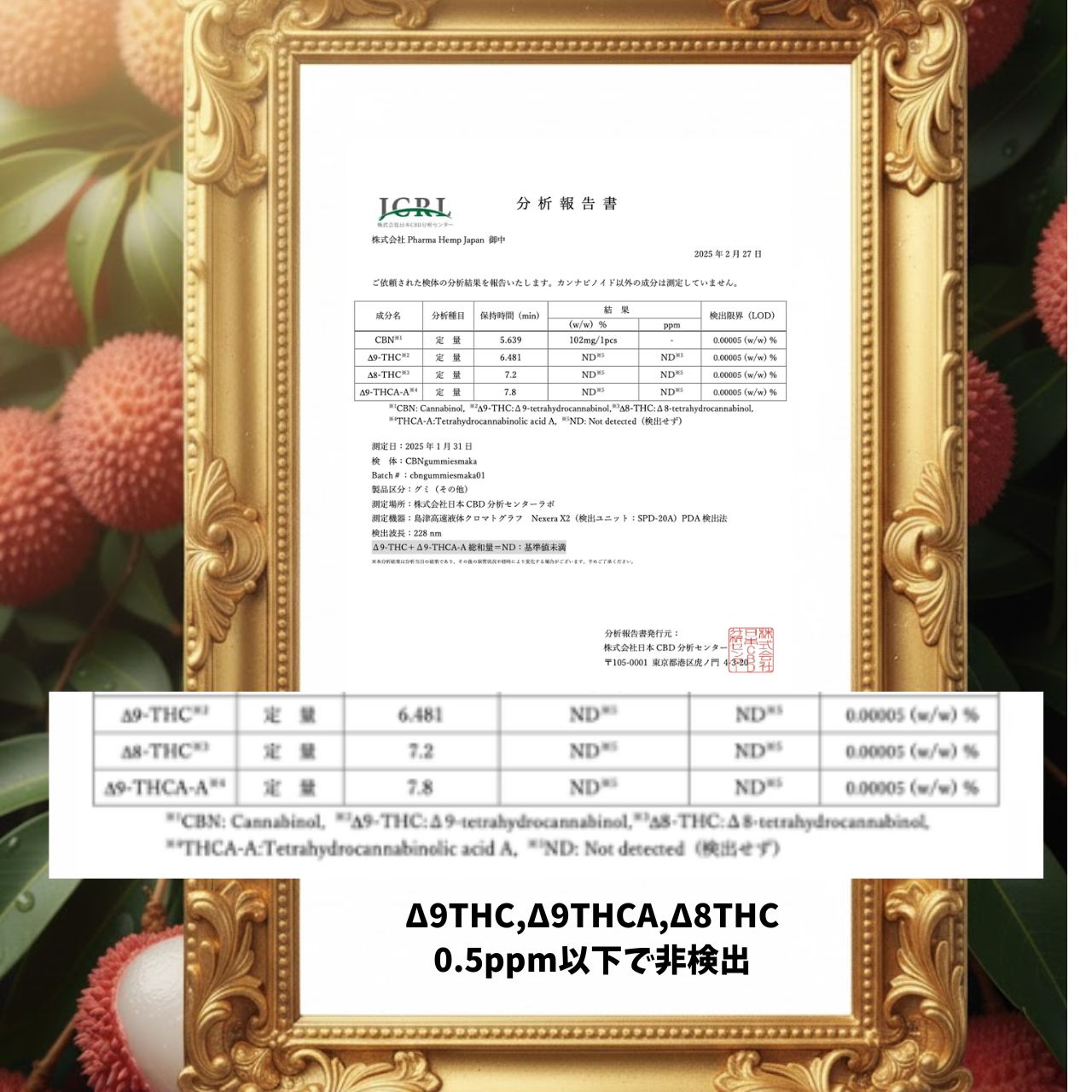 【CBNグミ+マカ】アンドレーヌさんのCBNグミ 1粒120mg マカ20mg ライチ味 弾力少し硬め 法改正対応製品 7粒 CBN840mg マカ 140mg 最終製品のCOA取得済み 国内製造 THC フリー